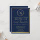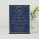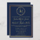 Navy Gold Wreath Monogram Calligraphy Wedding Invitation
