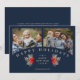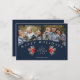 Navy Golden Effect Elegant 2 Photos Christmas Poinsettias Holidays Card with Envelope.