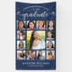 Announce to the world that your favourite grad has reached their milestone with this girly, stunning, simple, modern, personalised high school graduation K – 12 photo collage keepsake banner. A fun, playful visual of white script handwriting and cute, playful hearts, along with her name, class year, and 13 photos of your choice overlay a navy blue background. Personalise the custom text with your grad’s name and class year. Choose from indoor or outdoor options. Matching invites, thank you cards, cap toppers, posters, plaques, and other graduation goodies are also available in this trendy and stylish collection. Guaranteed to preserve cherished memories of their special occasion!