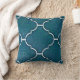 Navy Green Arabesque Scroll Pattern Moroccan Tile Cushion
