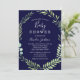 Navy Green Watercolor Wreath Boy Baby Shower Invitation