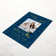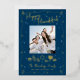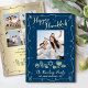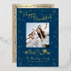 “Happy Hanukkah.” It's that time to touch base with your family and friends to celebrate Hanukkah and usher in the festival of lights. On the front, fun, whimsical real gold foil handwritten script typography and real gold foil hand drawn Hanukkah icon doodles, along with the photo of your choice, overlay a navy blue background. 4 additional personal photos, your custom message and navy blue hand drawn doodles on faux metallic gold ombre adorn the back. Feel the warmth and joy of the holiday season when you send out this fun, playful, modern, personalized 5 photo Hanukkah greeting card. Make this Hanukkah one to remember!
