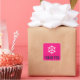 Dark navy blue and hot pink / fuchsia thank you sticker with a white helm illustration in between the bride and grooms initials.