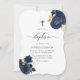 Navy Indigo Blue Floral Gold Leaf Baptism Invitation