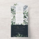 Navy Kraft Green Leafy Tropical Foliage Wedding All In One Invitation