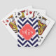 Navy Lg Chevron Coral Red Quatrefoil 3 Monogram Playing Cards