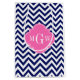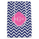 Navy Blue and White Large Chevron ZigZag Pattern, Hot Pink 3 Initial Monogram Label