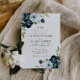 floral wreath design with elegant navy and light blue watercolor flowers.