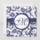 Monogram New Sizes Elegant Vintage Navy Damask Swirls Navy Blue Light Ribbon Wedding Invitation