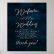 Navy Lustre Dark Blue Watercolor Design, with Silver Sparkle Typography, and beautiful watercolour background texture. With Modern Chic Script Fonts. A trendy & Luxurious style - Personalised Wedding Welcome to Our unplugged wedding sign!
