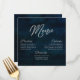 Navy Lustre Dark Blue Watercolor Design, with Silver Sparkle Typography, and beautiful watercolour background texture. With Modern Chic Script Fonts. A trendy & Luxurious style - Personalised Wedding Dinner Reception Table Decor Square Menus!