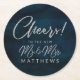 Navy Lustre Silver Cheers to the new Mr. & Mrs. Round Paper Coaster
