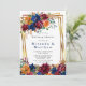 This design features a floral element in navy blue, orange and Marsala burgundy with autumn fall foliage watercolor leaves and wildflowers. Matching products available in collection “ Navy Marsala Orange Floral Geometric Wedding “