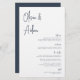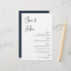 Designed to match our Modern Handwritten Script wedding invitations. A beautiful typography based design with a minimalist feel, featuring modern navy blue handwritten script and classic serif lettering. Personalize with your menu items with eight custom text fields.