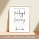 A simple and modern sign to display at the entrance to your wedding ceremony, this chic typography based design asks guests to participate in your "unplugged ceremony" by switching off their devices for the duration. Personalise with four lines of custom text, including your names at the bottom in handwritten script lettering. Colorway: Navy, a classic dark blue.