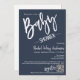 Navy Modern Minimalist Script Baby Shower QR Code Invitation
