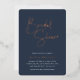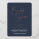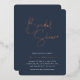 Invite guests to celebrate the bride to be with these modern and minimal bridal shower invitations. Simple design features "bridal shower" in rose gold foil handwritten script, with your event details beneath on a rich navy blue background.