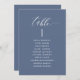 Help your guests find their table with this elegant modern seating plan cards with guests names. Design in navy blue background and white text. Double sided cards so guests can look from both, front or back for their names if case you like to use then in a hanging display. Clear space all around giving you the liberty to use clips or punch hole for hanging displays, or use table holder/frame. Modern hand written calligraphy elements. Part of our "Elegant Bliss" collection with a variety of coordinating products available, including table number cards and menus.