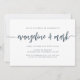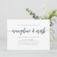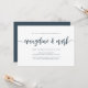 Simple and elegant engagement party invitation for modern couples features your names in handwritten calligraphy script typography. Personalise with your engagement party details beneath. A modern design in chic dusty navy blue and white for elegant engagement celebrations.