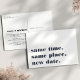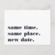Need to postpone or reschedule your wedding? Let guests know with these modern and lighthearted postcards in white with rich navy blue lettering. Funny and clever typography-based design features "same time, same place, new date" on front, with your new wedding date and details on the back.
