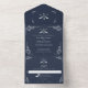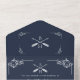 Invite guests to your upcoming wedding with a Navy Monogram and Arrows All in One Wedding Invite. Invite design features crossed arrows and monogram placement adorned with elegant corner flourishes. Personalise with the groom and bride's names along with the wedding date and location. Additional wedding stationery available with this design as well.