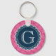 Navy Monogram Pink Hibiscus Pattern Key Ring