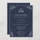 Invite guests to your rehearsal dinner with a Navy Monograms and Arrows wedding rehearsal dinner invitation. Invitation design features crossed arrows and monogram placement adorned with elegant corner flourishes. Personalise with the groom and bride's names along with the rehearsal dinner details. Additional wedding stationery available with this design as well.
