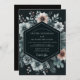 This design features a dramatic interplay of deep navy and muted blush blooms. Lush foliage and delicate flower clusters create a rich, romantic atmosphere. The dark, moody palette evokes a sophisticated and ethereal feel.