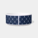 Pamper your seafaring pooch with our personalised dog bowl, featuring a pattern of tiny white nautical anchors on classic navy blue, with your pet's name on the front.