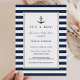 Make the perfect announcement of your baby shower with this nautical baby shower baby boy invitation. This navy and white invitation with anchor is perfect to celebrate the arrival of a little boy. It's the perfect addition to a beach theme or nautical theme baby shower.