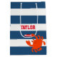Navy Nautical Frisbee Crab Personalised Medium Gift Bag