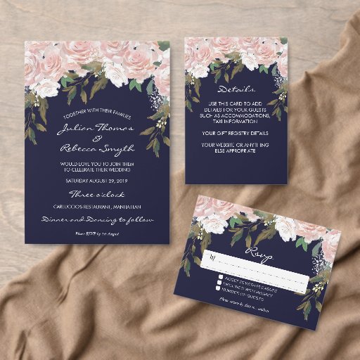 Navy Pale Pink Floral Wedding SuiteDesigned by Eclectic Designs