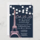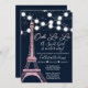 Navy Paris Eiffel Tower Glitter Lights Baby Shower Invitation