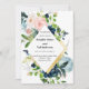 Navy, Peach and Gold Floral Watercolor Wedding Invitation