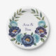 Navy Peony and Turquoise Roses Floral Wedding Paper Plate