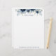 A watercolor floral letterhead stationery featuring watercolor-painted navy blue peonies with silver and dusty blue eucalyptus greeneries.
