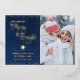 “May your days be merry & bright.” A playful, real gold foil calligraphy script quote, star, and confetti dots against a navy blue marble watercolor background on the left, and the photo of your choice on the right, help you usher in Christmas and New Year. A faux gold foil ombre background sprinkled with faux gold foil confetti dots is on the back. Feel the warmth and joy of the holiday season whenever you send this trendy and festive personalised holiday real gold foil photo greeting card. Matching and coordinating envelopes, stickers, giftwrap, pillows, housewares, jewellery, and other products are also available in my “Christmas Days Be Merry & Bright” store collection. Send this to someone special!