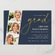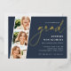 Celebrate their big milestone with these chic foil invitations that are perfect for a graduation celebration. Luxe design features "grad" in elegant gold foil on a rich navy blue background. Personalise with your party details aligned at the right in modern white lettering. Finish the design with three square photos of the graduate in a photo strip layout.