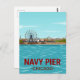 A bright, flat-style illustration of Chicago's Navy Pier, featuring the iconic Ferris wheel, buildings, and the deep blue water of Lake Michigan. Perfect for a summer vacation memory.