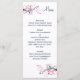 This pink, navvy blue, and white floral menu card matches the wedding invitation shown below. It is designed on a rack card so the front is glossy and the back has a matte finish. If you would like a menu card on invitation paper to match your invitations, or if you have any requests for additional items or changes, please email niteowlstudio@gmail.com with your request.