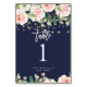 navy pink floral lights wedding table number card