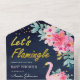 Navy Pink Floral Tropical Flamingo Baby Shower All In One Invitation