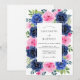 A vibrant palette of navy blue and soft pink creates a striking watercolor display. Lush roses and delicate greenery form a rich botanical border. This design exudes a sophisticated energy, perfect for a high-contrast spring or summer event. The painterly textures of the petals add a soft, artistic touch to the bold navy tones.