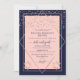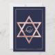 This elegant and modern Bat Mitzvah invitation is ideal for a classy and formal event. It features a faux printed sparkly rose gold glitter confetti sprinkled over a thin geometric diamond and rectangle border with a navy blue thick border underneath and blush pink fill alongside rose gold stars of David. It's chic, luxurious, pretty, simple, and trendy; the perfect design for your special day.