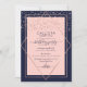 This elegant and modern birthday party invitation is ideal for a classy and formal event. It features a faux printed sparkly rose gold glitter confetti sprinkled over a thin geometric diamond and rectangle border with a navy blue thick border underneath and blush pink fill. It's chic, luxurious, pretty, simple, and trendy; the perfect design for your special day.