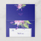 Elegant floral wedding table number template with a bunch or blush pink flowers with purple plum blooms and sage green foliage, with dark blue script lettering on a navy (editable) background.