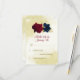 Beautiful wedding response card rsvp featuring dark navy blue and red flowers and gold leaves .