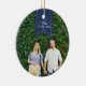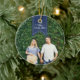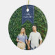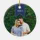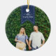 Personalise this elegant ceramic ornament with a photo on each side to commemorate a special year. Customise the front with your family name in white on a navy blue ribbon banner, and add the year to the back.