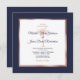 Invite your guests to help you celebrate your special day with this modern and elegant invitation featuring modern script, rose gold copper and navy blue text including an artistic palm tree and metallic rose gold copper frame on the front. A navy blue background is on the front and back of the card. If you need help or a custom order, please contact me.