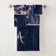 Navy & Rose Gold Marble Monogram Elegant Luxury Bath Towel Set